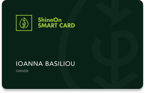 Έχουμε ετοιμάσει για εσάς την έξυπνη κάρτα ShineOn για να σας επιβραβεύσουμε την εμπιστοσύνη που μας δείχνετε όλα τα χρόνια της λειτουργιά μας. Με την κάρτα ShineOn για κάθε αγορά που κάνετε κερδίσετε επιστροφή χρημάτων στην επόμενη αγορά σας αλλά και ειδικές προσφορές μόνο για τους κάτοχους της κάρτας. Επισκεφτειτε το φαρμακείο μας και αποκτήστε την δική σας Smart Card.